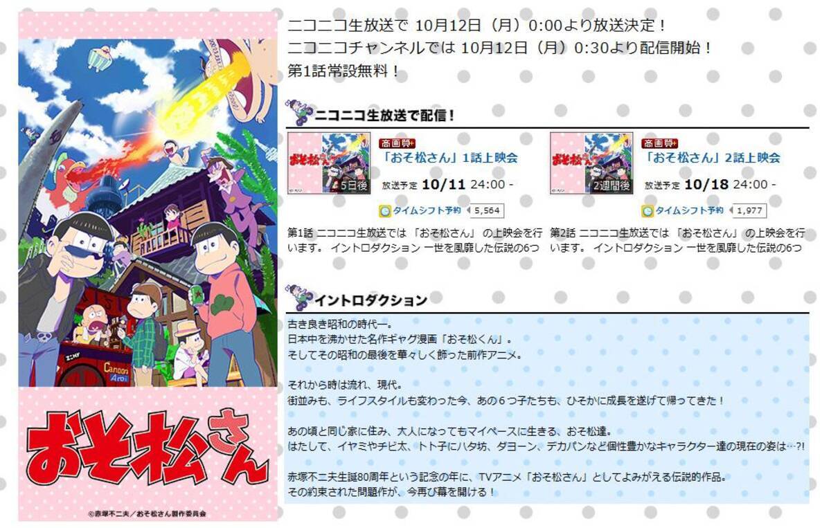 第一話はパロディ満載で話題沸騰 アニメ おそ松さん が Niconico で放送決定 15年10月8日 エキサイトニュース